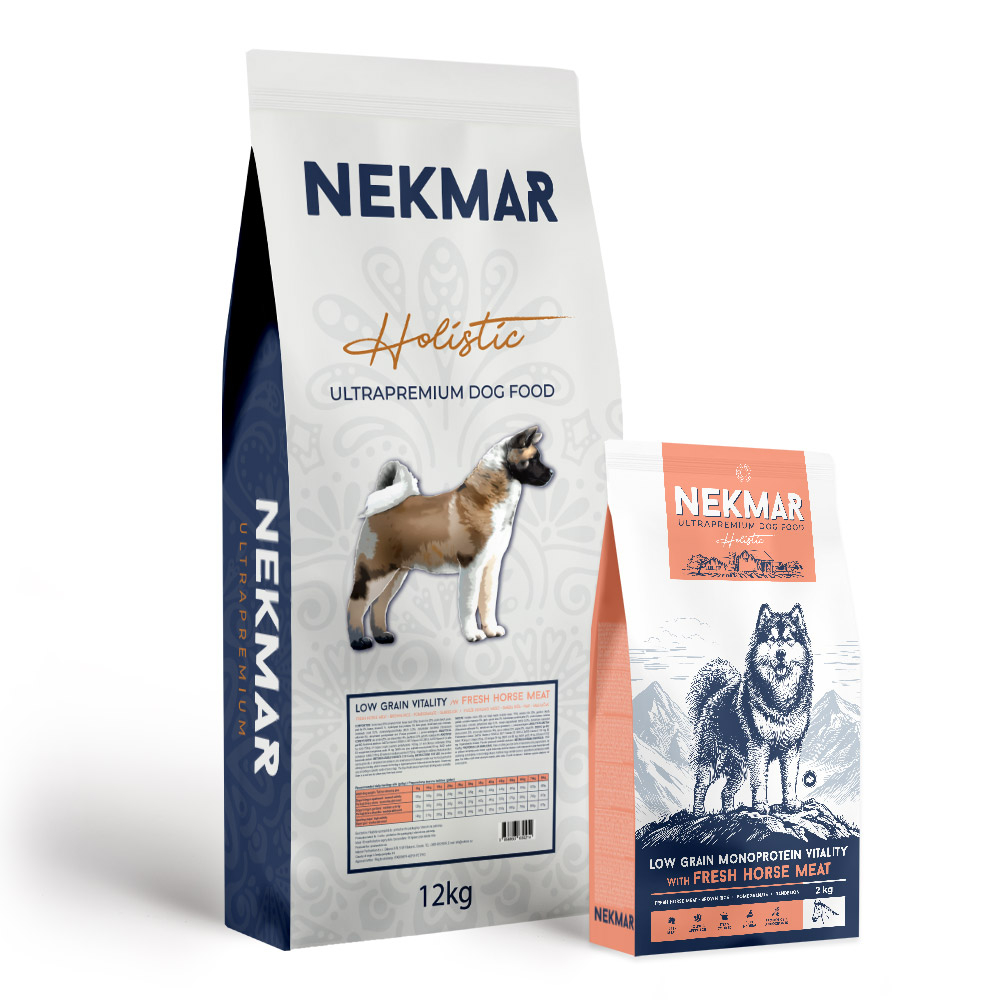 COMPOZIȚIE: carne de cal 35% (din care carne proaspătă de cal 15%), orez brun 20%, amidon de mazăre, mazăre, grăsime de porc 9%, fasole, semințe de in 3%, proteine hepatice hidrolizate 3%, drojdie de bere, pulpă de sfeclă uscată, minerale, alge deshidratate 0,3%, manan-oligozaharide (MOS 0,2%), păpădie deshidratată (Waraxacum officinale W.), rodie deshidratată (Punica granatum L.), yucca schidigera.